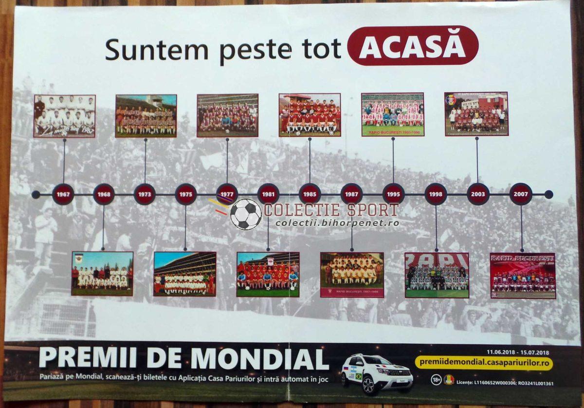Una dintre cele mai iubite și titrate echipe de fotbal din România, Rapid București are o istorie aparte, cu perioade de glorie și perioade mai puțin bune. După revenirea spectaculoasă în prin plan de după 1989, cu 2 titluri de campioană, 4 Cupe ale României, 4 Supercupe ale României și o cupă a Ligii, Rapid trece acum prin cel mai negru moment al lungii sale istorii. După câțiva ani marcați de probleme financiare grave, clubul a falimentat în 2016.